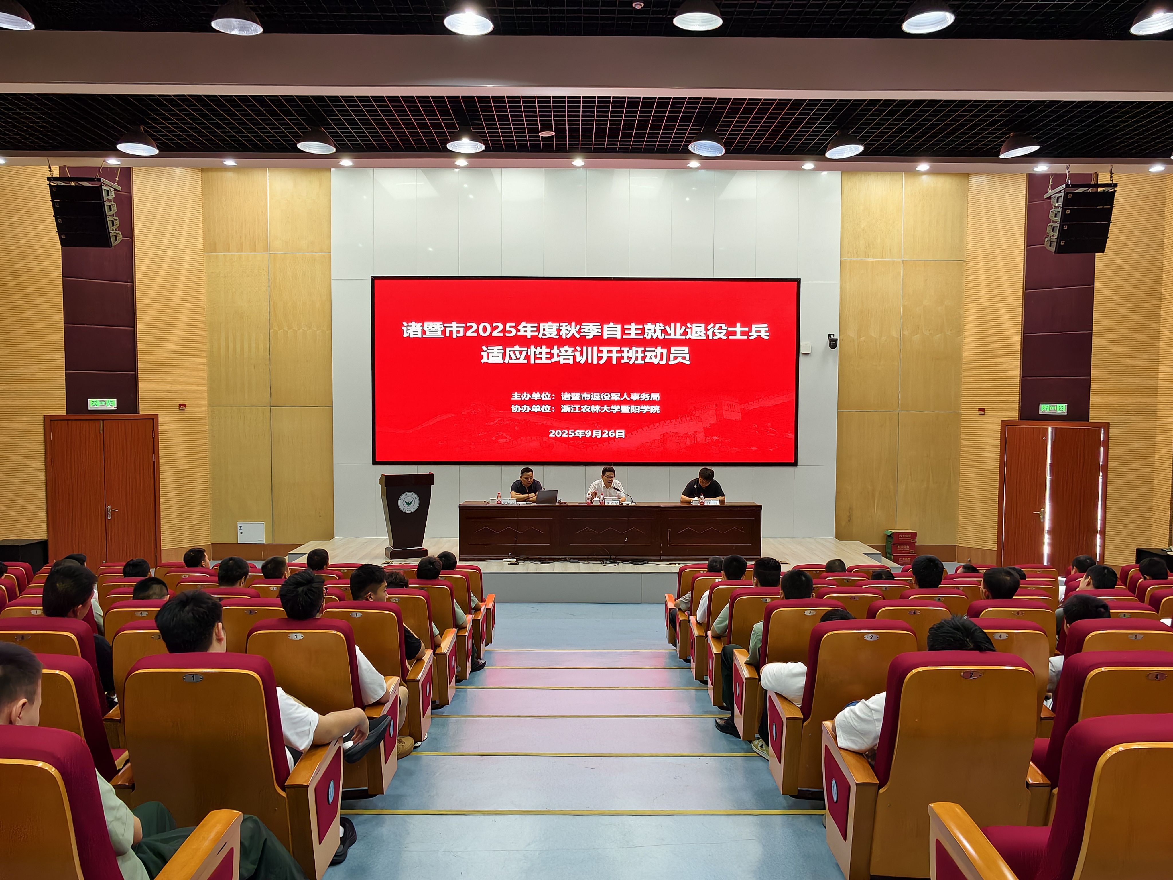 为帮助退役军人顺利适应职场需求,加快角色转换,助力就业创业,9月26日下午,由诸暨市退役军人事务局主办,学院承办的诸暨市2025年秋季自主就业退役士兵适应性培训开班仪式在图书馆报告厅举行。诸暨市退役军人事务局副局长蔡榆军、安置保障科科长张陈军,继续教育学院副院长赵锋出席开班仪式。